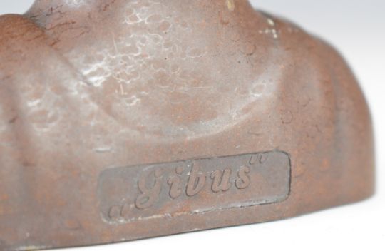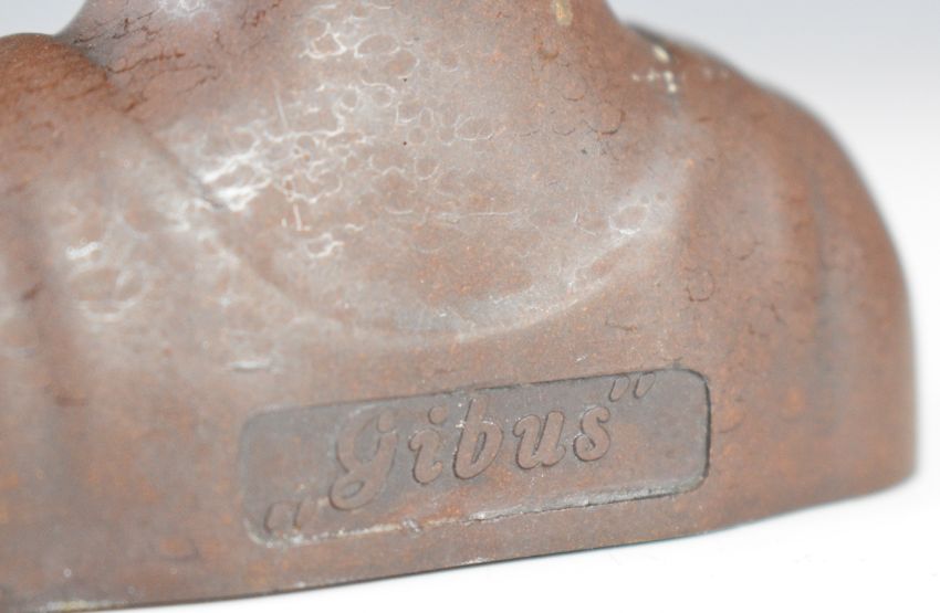 Gibus of Denmark Gutta Percha or bakelite figural mechanical cigar cutter with spring loaded top hat, H12cm