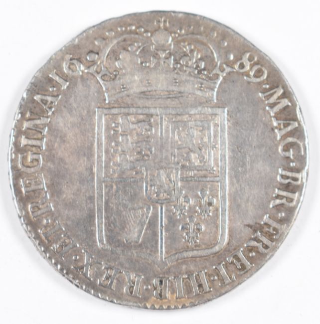 1689 William and Mary halfcrown, first busts and first reverse