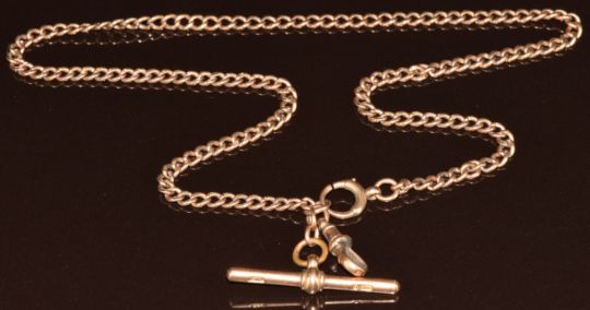 A c1900 9ct rose gold Albert / watch chain, 19.8g, 41cm