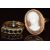 Three 9ct gold rings, one set with a cameo, one sapphires and the other in the form of a leopard, 8.8g, size M, N & L