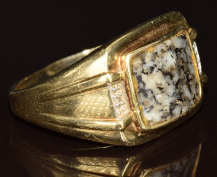 A 9ct gold ring set with kemnay granite and diamonds, 7.2g, size V