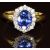 An 18ct gold ring set with an oval cut tanzanite of approximately 1.2ct surrounded by diamonds, 3.9g, size M
