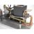 Scott vacuum or flame gulper engine, with cam operated gear and water hopper cooling, driving a 13cm flywheel, on aluminium baseplate also supporting the gas burner and gas tank, with drawings for the engine, overall length of base 35.5cm