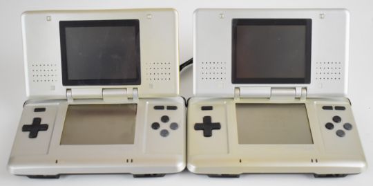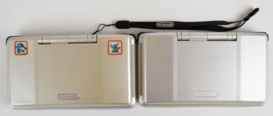 Two Nintendo DS handheld game consoles together with eleven DS and Game Boy Advance games, carry case and chargers.
