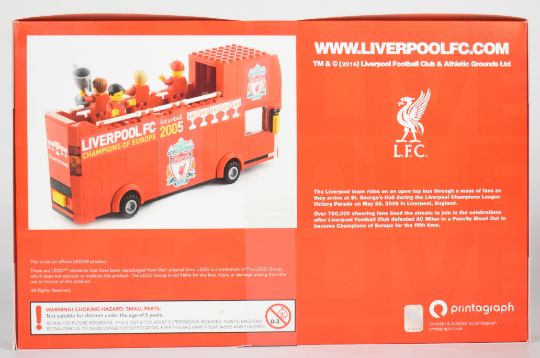 Liverpool FC limited edition 'UEFA Champions League Winners 2005 Parade Bus' kit by Printagraph using official Lego bricks, in sealed box.