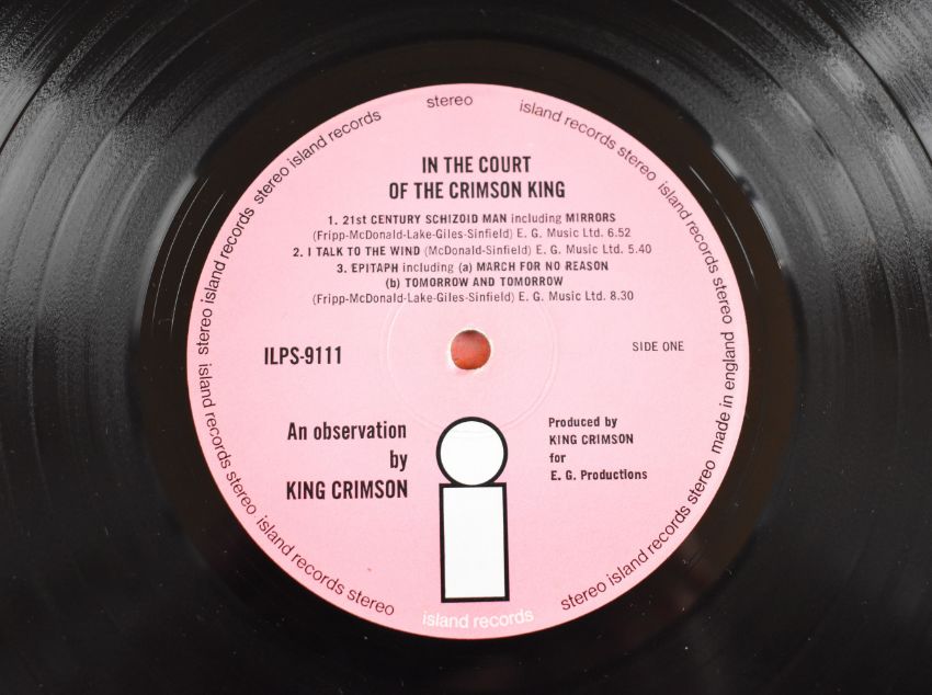 King Crimson In the Court of King Crimson (ILPS-9111) first UK pressing with pink 'i' Island label, A2/B3 matrix and smooth gatefold cover with  E.J. Day London credit. Vinyl has full gloss and appears VG+, labels are clean