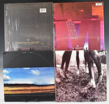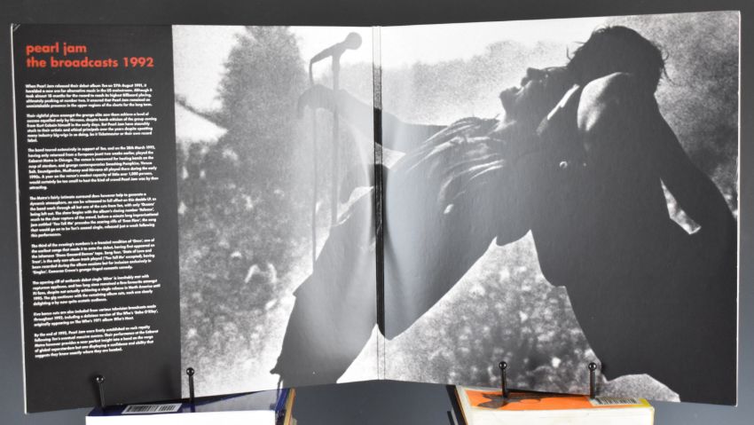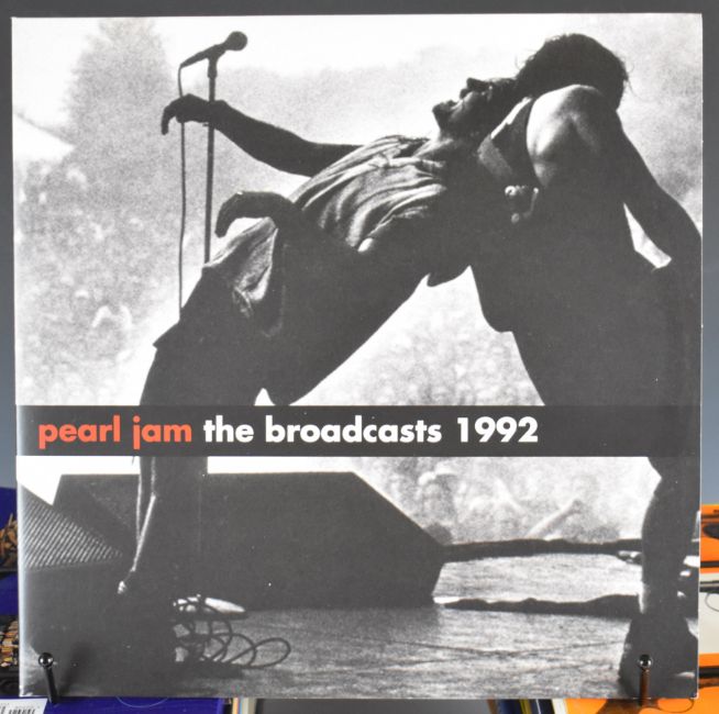Five Pearl Jam Grunge / Indie Rock LPs comprising Vs (Epic EPC 474549 1) European first press with gatefold sleeve and coloured lyric inner sleeve, Vitality (Epic 477861) with 8 page booklet and picture cover inner sleeve, in open shrink wrap, Ten (sealed in Shrink), Yield with die cut cover and sticker insert and The Broadcasts 1992 double bootleg LP. Vinyl and covers appear VG+ to Ex in the main