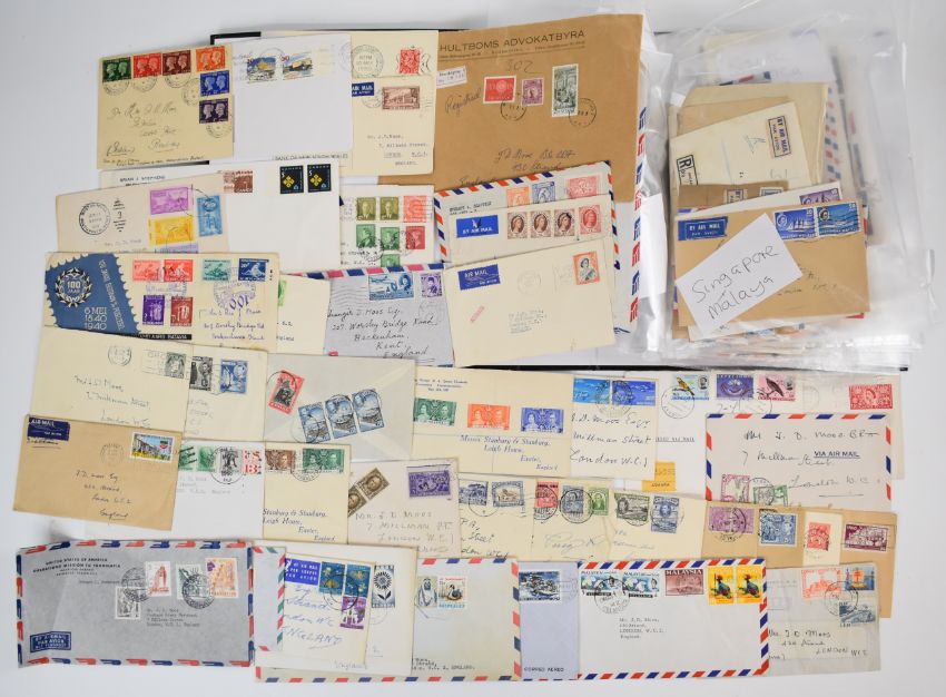 World accumulation of stamps and covers including collection of Netherlands stamps and first day covers in spring back album including first day covers of 1950s charity issues, box of hundreds of 1930s-1950s world wide stamps on commercial covers in airmail, meter marks and official paid GB first day covers 1970s handwritten address, world stamps on and off paper in envelopes and tins, two 1964 Shakespeare presentation packs, two lever arch files with Commonwealth and world commercial covers including Southern Rhodesia, Sudan, South Africa, USA and Sweden, GB stamps and first day covers in spring back albums 1950s-1960s and stamps in well filled Lincoln album