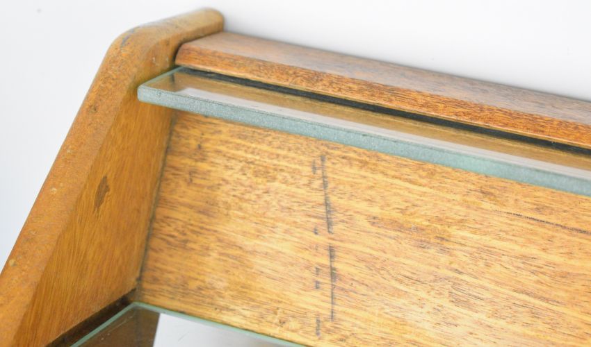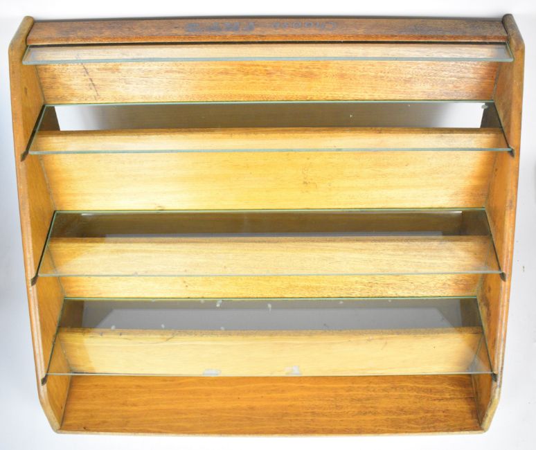 Fry's chocolate shop display or advertising rack with glass inserts, width 68cm