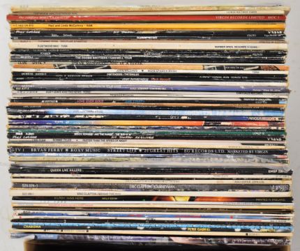 Approximately sixty four Rock / Pop / Post Punk and other LPs including two Queen, Kate Bush, David Bowie, Squeeze, The Cars, Styx, five Eric Clapton, Big Country, Tears for Fears, two Eurthymics, Pat Benatar, Peter Gabriel, Godley and Creme, Huey Lewis, Fairground Attraction, Bryan Adams, Dire Straits, Boston, Survivor, Phil Collins, Fleetwood Mac, Roxy Music, two Elton John, Foreigner etc. Vinyl appears VG+ in the main.