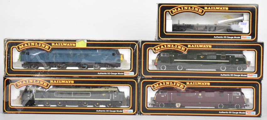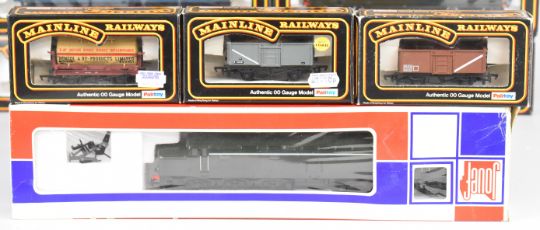 Six Mainline and Jouef 00 model railway diesel locomotives together with eleven goods wagons, all in original boxes.