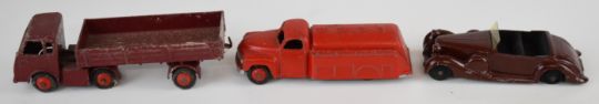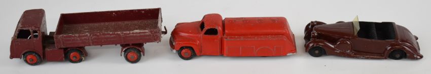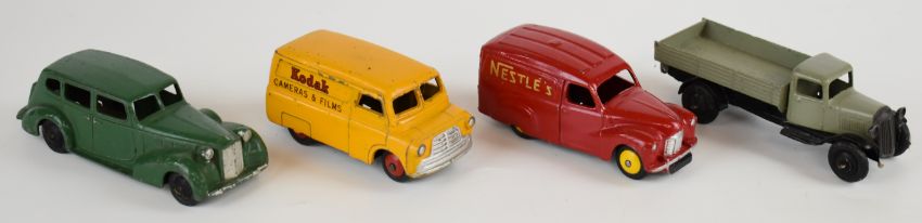 Nineteen Dinky Toys diecast model cars and trucks to include Daimler Ambulance, Royal Mail Van, NCB Electric Van, Chrysler, Packard, Bedford Kodak, Austin Nestle, Hindle Smart Helecs and Studebaker Tanker.