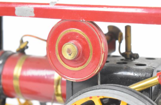 Mamod TE1 live steam showman's engine with single oscillating cylinder, worm and wheel steering, dynamo to front and chimney extender on the roof, length 30.5cm