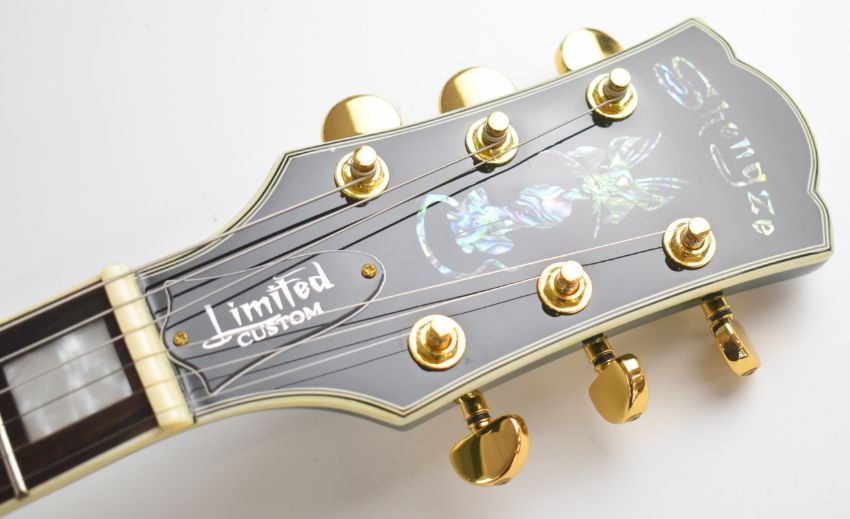 Bad Cat Instruments Custom Unicorn Les Paul style electric guitar in green burst finish with rosewood fretboard, pearlescent inlays, humbucker pickups and gold hardware, made in China, serial no. 011708007, in fitted carry case.