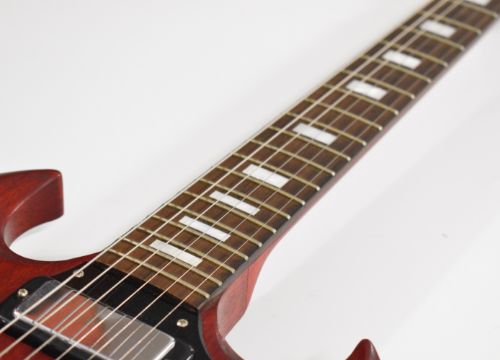 Gibson SG 70's Tribute electric guitar in heritage cherry red finish with rosewood fretboard, pearlescent inlays and two mini humbucker pickups, made in USA, 2012, serial no. 118020340.