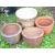 Four jardinières / garden planters comprising three terracotta style and one with glazed finish in wicker casing, largest D35 x H30cm