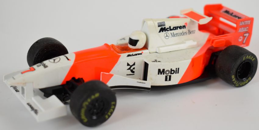 Seven Scalextric 1:32 scale F1 and Rally slot cars comprising Ford XR2i Repsol, Mini Countryman WRC, Mercedes AMG Petronas, Subaru Impreza WRC, Morgan Aero 8, Renault Laguna BTCC and McLaren Mercedes MP4/10, all in original boxes.