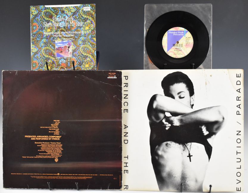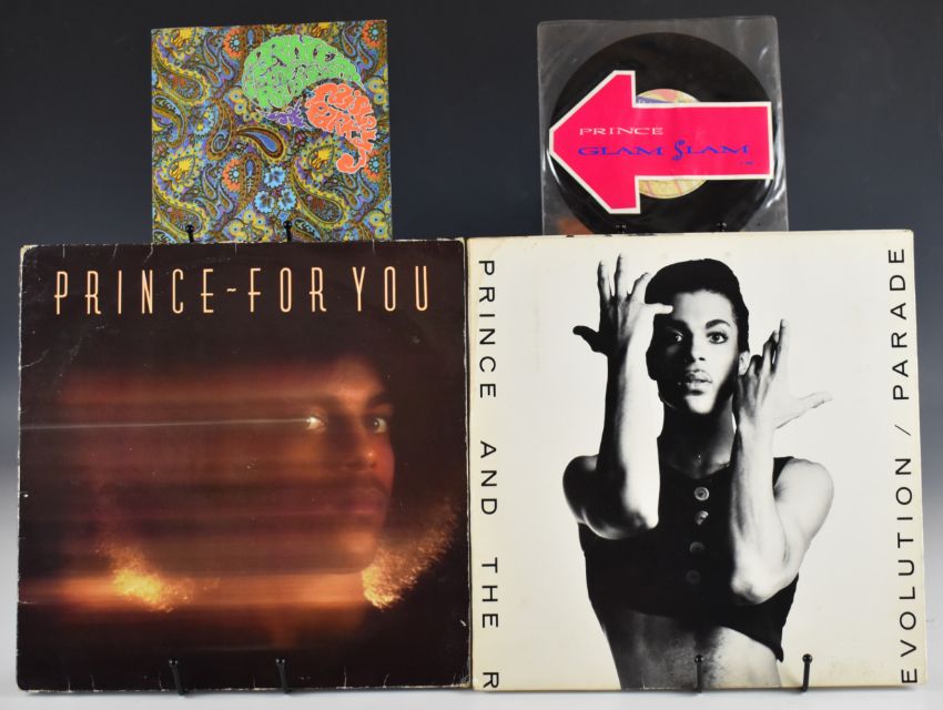 Collection of eleven Prince / Prince and the Revolution records comprising four LPs 1999, For You, Evolution / Parade and Batman, four 12" singles Little Red Corvette, Purple Rain, Let's Go Crazy and Gett Off and three 7" singles. Vinyl appears VG+ or better in the main