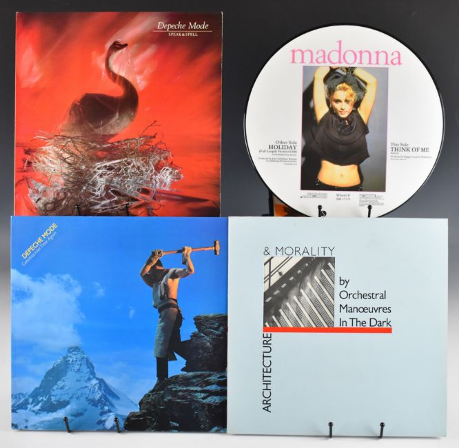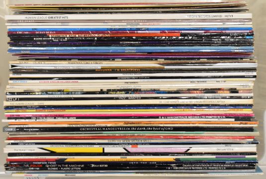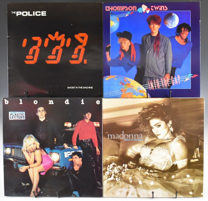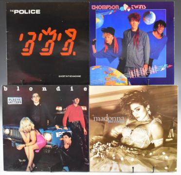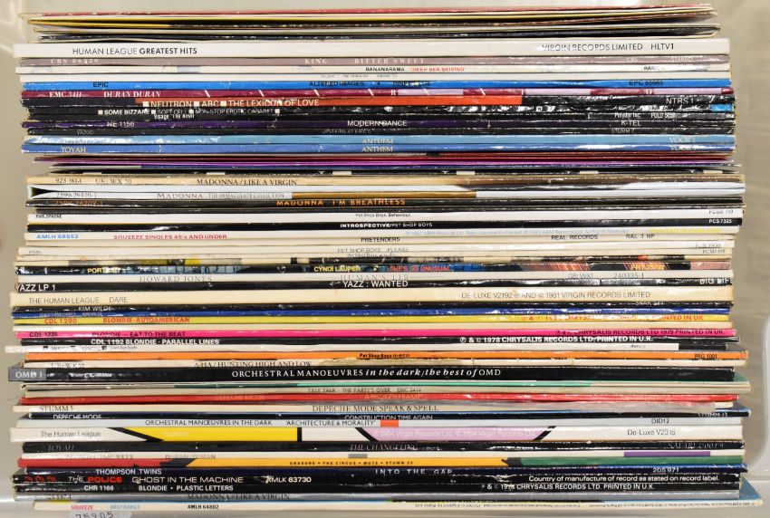 Collection of fifty three Post Punk / New Wave / Synth Pop LPs including three OMD, three Depeche Mode, Talk Talk, Tears for Fears, two Squeeze, A-ha, Pretenders, five Pet Shop Boys, two Police, Cyndi Lauper, Howard Jones, Thompson Twins, Yazz, three Human League, Kim Wilde, six Blondie, four Madonna, King, Bananarama, two Erasure, Altered Images, two Duran Duran, ABC, Soft Cell, Visage, Yazoo and three Toyah together with thirteen 12" singles including a Madonna picture disc. Part of a single collection of records that have been carefully stored for many years. Vinyl and covers appear to be VG+ to Ex+ in the main