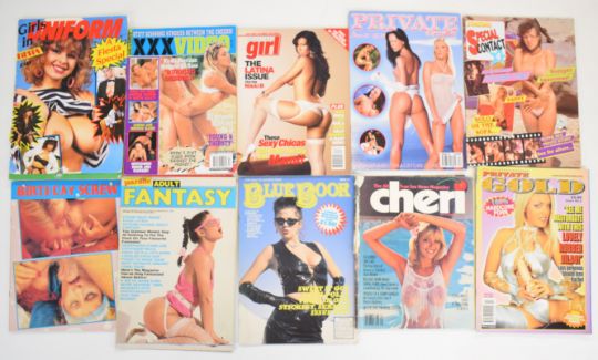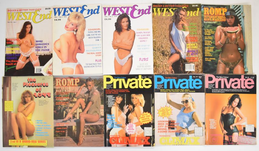 [Adult Entertainment] Play Dames, a collection of 20 vintage glamour and erotic magazines, various issues between vol.1 no.1 (1980) and 1982, together with nine issues of West End (1990s) and copies of Private, Romp, Yes, Game, Cheri, Special Contact, Smooth Girl, Cockade etc (60)