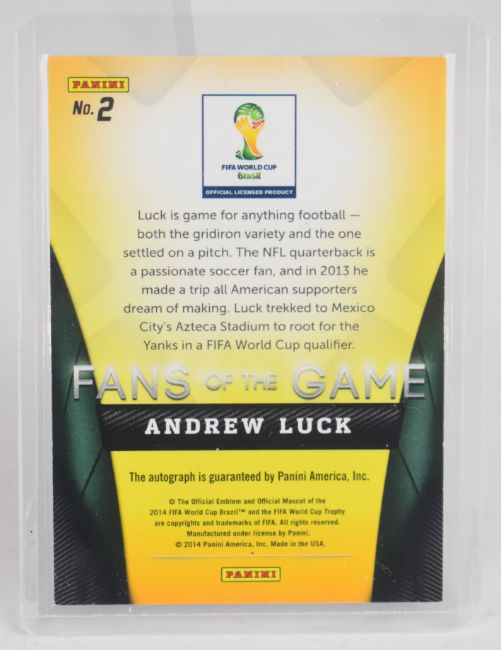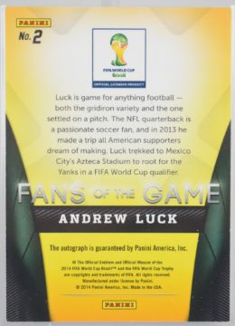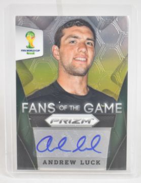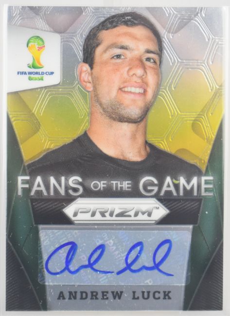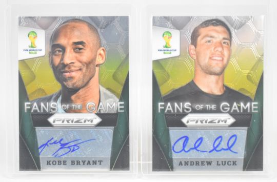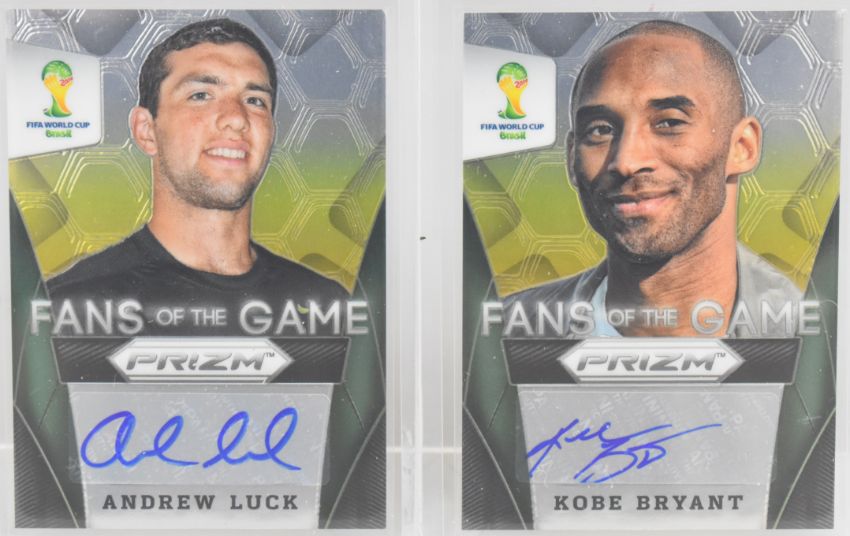Panini Prizm 2014 World Cup - Kobe Bryant and Andrew Luck 'Fans of the Game' autograph/signature football trading cards.