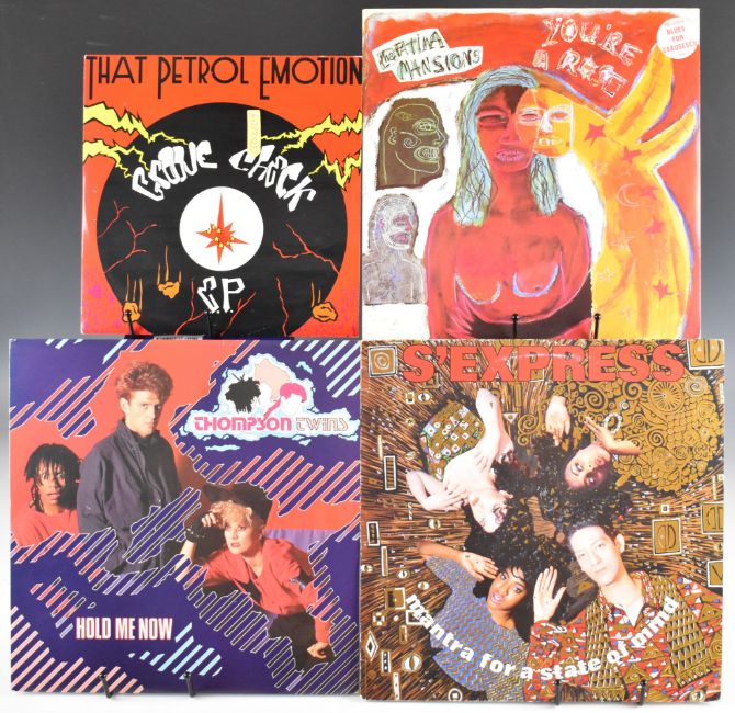 Thirty Four 12" singles / mini albums including one 10", a mix of Indie Rock / Punk / New Wave / Post Punk / House / Rock includes four That Petrol Emotion, The Fatima Mansions, S'Express, The Screaming Blue Messiahs, Thompson Twins, The Leather Nun, Echo and The Bunnymen, Billy Idol, Genesis, Johnny Hates Jazz, Shakespears Sister, Mariah Carey, Peter Gabriel (includes duet with Kate Bush), Pet Shop Boys, Robert Hitchcock and the Egyptians, Mega City Four, Julian Cope, World of Twist, Eddie Reader and Phil Collins. Part of a large collection of Prog / Heavy / Psychedelic Rock records, mostly from the 1960s and 1970s, some later, which included many rarities from the UK, USA, Canada and several Scandinavian countries as well as Germany, and Eastern European countries. The vinyl in the collection appears to be VG+ to Ex in the main.