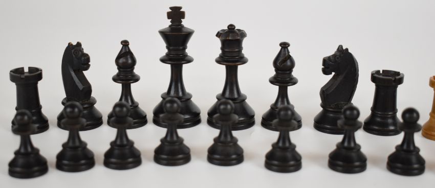 Early to mid 20th century Staunton style boxwood and ebony chess set, height of king 62mm