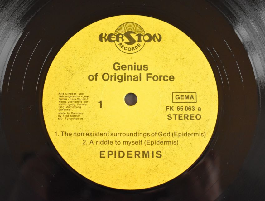 Epidermis, Genius of Original Force (Kerston Records 65063) 1977 Krautrock / Prog Rock German first pressing. Gatefold cover and vinyl appears Ex in the main