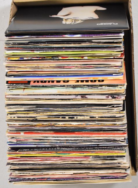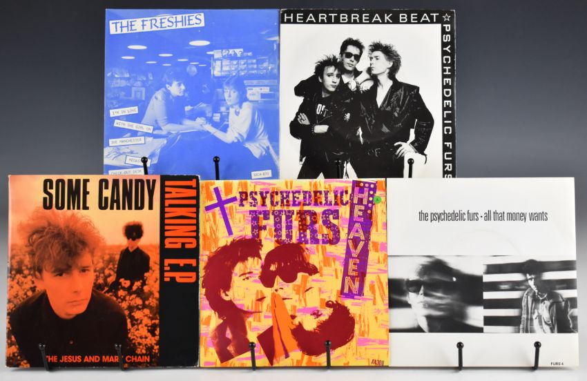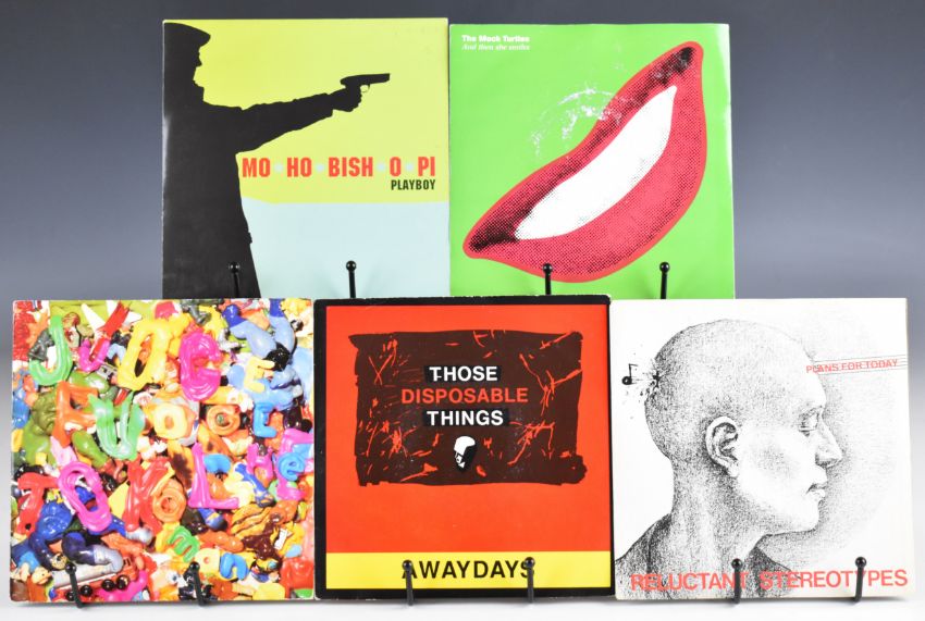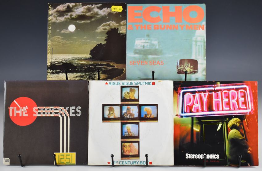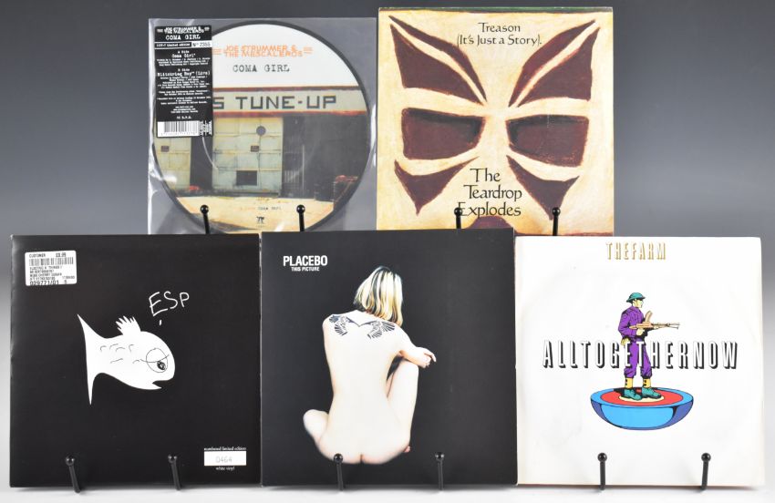 One hundred and two Indie Rock / New Wave / Post Punk / Synth Pop / Leftfield 7" singles including three Joy Division, Placebo, The Fall, The Wedding Present, Echo and the Bunnymen, Psychedelic Furs, The Farm, ESP, River Detectives, River City People, Teardrop Explodes, Stereophonics, Jesus and Mary Chain, The Tubes, The Strokes, That Petrol Emotion, Translator, The Soup Dragons, Those Disposable Things, Reluctant Stereotypes, two The Freshies, Happy Mondays, Mock Turtles, Mo Ho Bishi O Pi, Nut, Sigue Sigue Sputnik, Strawberry Switchblade, Spandau Ballet, four The Style Council, five Prince, Transvision Vamp, Simple Minds, Pseudo Echo, Joe Strummer, Kissing the Pink, seven OMD, Prefab Sprout, Scritti Politti, Talk Talk, Tears for Fears, Queen The Invisible Man (clear vinyl) etc. Vinyl appears VG+ in the main
