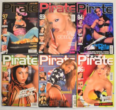 [Adult Entertainment] Pirate, a collection of 65 small format pocket sized glamour and erotic magazines, various issues from no.10 (1991) to no.111 (2008) together with a collector's hardback edition of Masters of Fetish Hardcore Photography Trevor Watson (66)