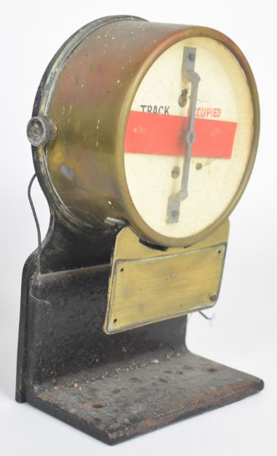 GWR track indicator with brass case, on bracket, overall height 22cm, together with a BR(W) hand lamp