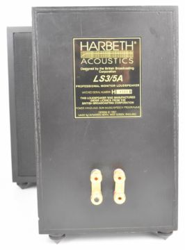 Pair of Harbeth Acoustics LS3/5A professional monitor loudspeakers, manufactured under licence by The British Broadcasting Corporation (BBC), 1987, matched serial number 4569 A/B, height 32cm each.