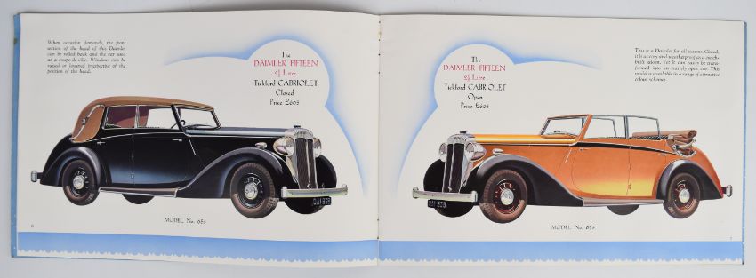 Seven pre war and similar car brochures comprising Delahaye, Triumph Dolomite, Austin 12, Vauxhall 14, Wolseley, Rover and Daimler 15