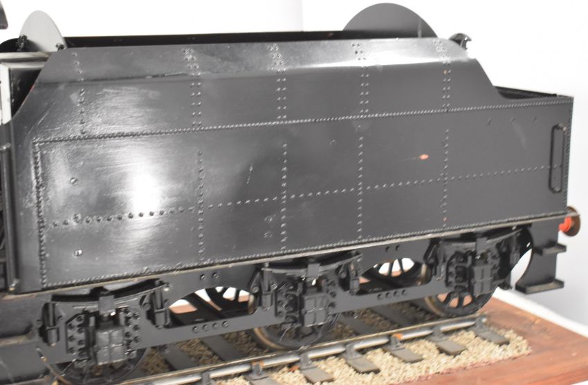 Modelworks 5 inch gauge kit built LMS 4-6-0 black 5 live steam locomotive. The copper boiler having twin water level gauge glasses and twin safety valves and being fed by twin injectors and a hand pump in the tender. The twin outside cylinders having Walschaerts valve gear operated by a screw reverser in the cab, the cylinders lubricated by a ratchet lubricator. Locomotive, tender, buffers and drawhooks being fully sprung and with hand brakes on driving wheels and tender. With build paperwork including original boiler certificate dated 2004. The vendor advises the locomotive has been run on air but not steamed. Overall length 173cm