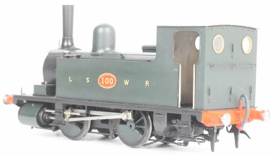 Mike Chaney LSWR  0-4-0 gauge 1 electric powered tank locomotive number 100 with sprung buffers and electric motor drive fitted, overall length 25.5cm