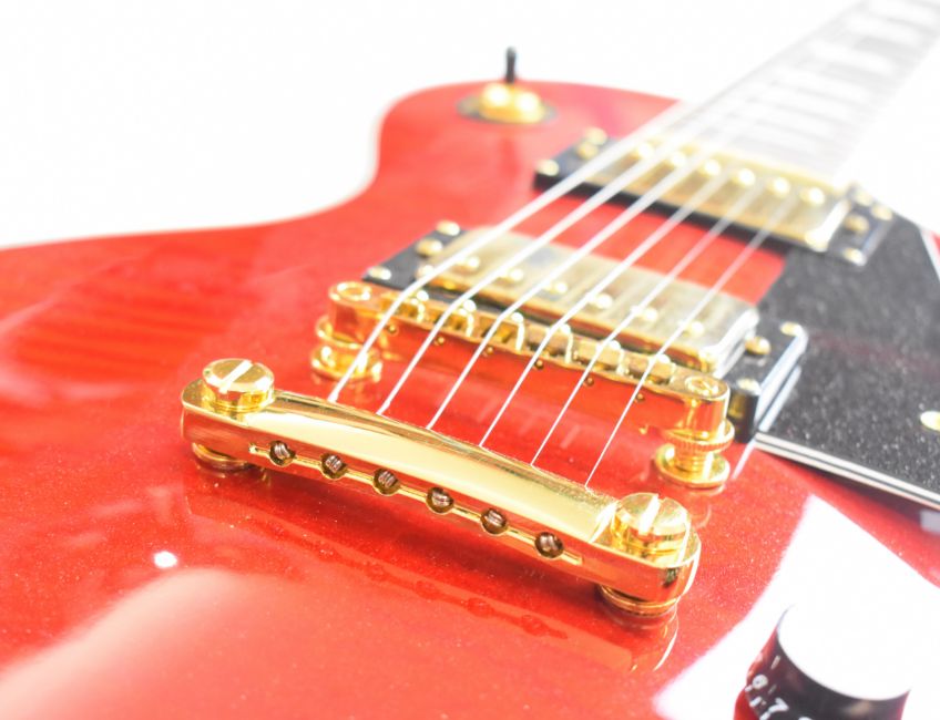 Bad Cat Instruments Custom Unicorn Les Paul style electric guitar in cherry red finish with rosewood fretboard, pearlescent inlays, humbucker pickups and gold hardware, made in China, serial no.001704056, in fitted carry case.