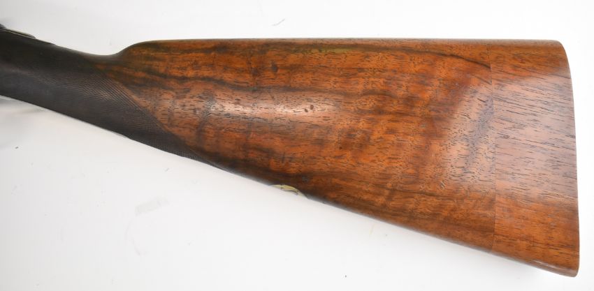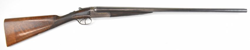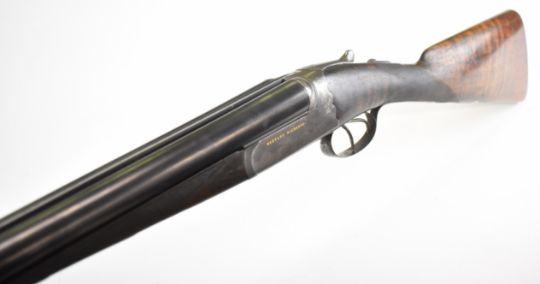 Westley Richards 'Gold Name' 16 bore side by side detachable-lock ejector shotgun with gold named locks, chequered grip and horn tipped forend, engraved cartouche to the underside of the stock, double trigger and named 27.75 inch barrels, overall length 113cm, length of pull 36.5cm, serial number 9976, in leather leg of mutton gun case. PLEASE NOTE THAT A VALID RELEVANT SHOTGUN CERTIFICATE IS REQUIRED TO VIEW OR PURCHASE THIS LOT AND FOR ALL SHOTGUNS OR RIFLES PLEASE ENSURE YOU HAVE THE RELEVANT CERTIFICATE BEFORE BIDDING.