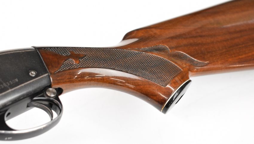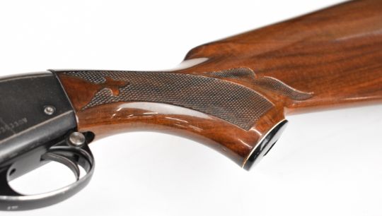 Remington Model 1100 12 bore 3-shot semi-automatic shotgun with ornately carved and chequered semi-pistol grip and forend, engraved action and bolt, vented rib and 28 inch barrel choked improved cylinder, overall length 122.5cm, length of pull 35.5cm, serial number L636330V. PLEASE NOTE THAT A VALID RELEVANT SHOTGUN CERTIFICATE IS REQUIRED TO VIEW OR PURCHASE THIS LOT AND FOR ALL SHOTGUNS OR RIFLES. PLEASE ENSURE YOU HAVE THE RELEVANT CERTIFICATE BEFORE BIDDING.