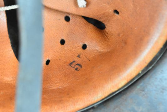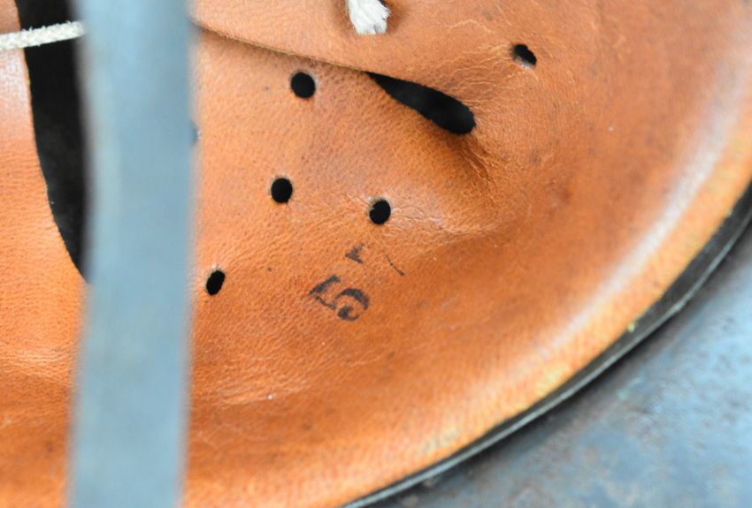WW2 Nazi German / Third Reich M40 double decal steel helmet with SS (Waffen SS) decal and party emblem decal, interior stamped with Q64 and batch number DN369, with leather liner size stamped 57 and chinstrap