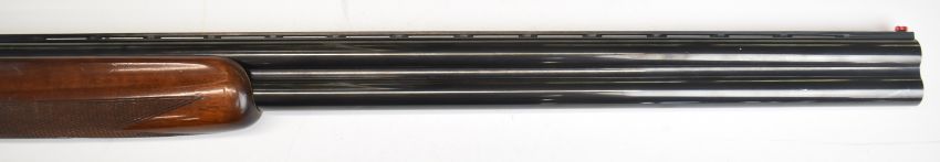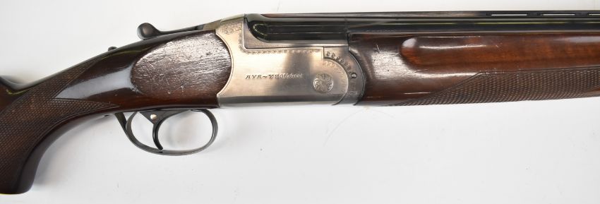 AYA Yeoman 12 bore over and under ejector shotgun with named locks and underside, chequered semi-pistol grip and forend, single trigger, vented top rib and 28 inch barrels choked ¼ and ½, overall length 113.5cm, length of pull 35.5cm, serial number 102832. PLEASE NOTE THAT A VALID RELEVANT SHOTGUN CERTIFICATE IS REQUIRED TO VIEW OR PURCHASE THIS LOT AND FOR ALL SHOTGUNS OR RIFLES. PLEASE ENSURE YOU HAVE THE RELEVANT CERTIFICATE BEFORE BIDDING.
