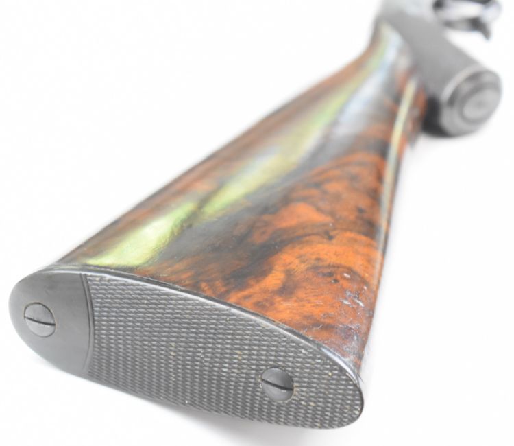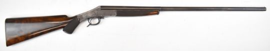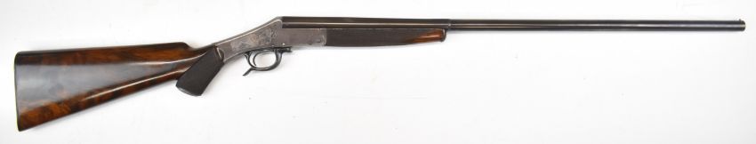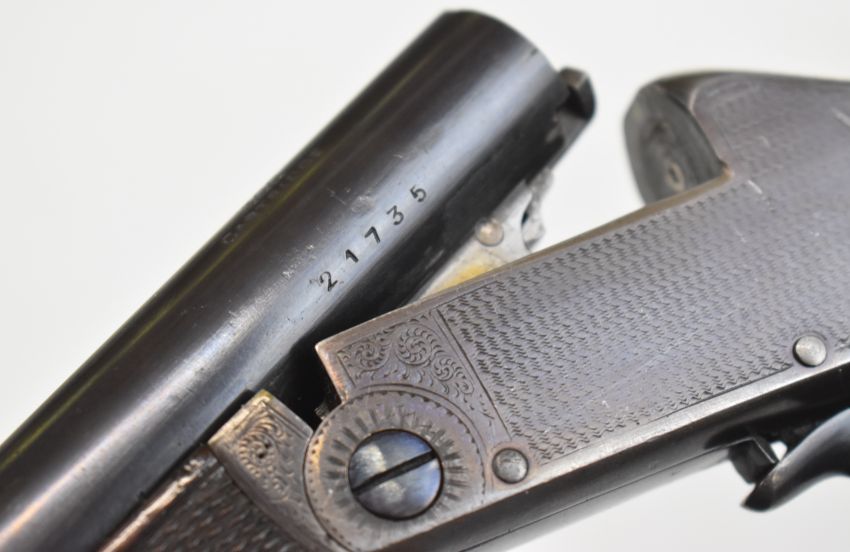 John Dickson style .410 shotgun converted from a .300 rook rifle with engraved action and push forwards underlever, chequered semi-pistol grip and forend and 26 inch smooth bored barrel, overall length 105cm, length of pull 34.5cm, serial number 1041/ 21735. PLEASE NOTE THAT A VALID RELEVANT SHOTGUN CERTIFICATE IS REQUIRED TO VIEW OR PURCHASE THIS LOT AND FOR ALL SHOTGUNS OR RIFLES PLEASE ENSURE YOU HAVE THE RELEVANT CERTIFICATE BEFORE BIDDING.