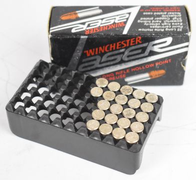 Seven hundred and four .22 rifle cartridges including Winchester Subsonic 42 Max, Winchester Laser, Federal Game-Shok, RWS High Velocity and RWS Dynamit Nobel Target, all in original boxes. PLEASE NOTE THAT A VALID RELEVANT FIREARMS CERTIFICATE IS REQUIRED TO VIEW OR PURCHASE THIS LOT AND FOR ALL SHOTGUNS, RIFLES OR AMMUNITION PLEASE ENSURE YOU HAVE THE RELEVANT CERTIFICATE BEFORE BIDDING. PLEASE ALSO NOTE THAT AMMUNITION CANNOT BE SENT IN THE POST.