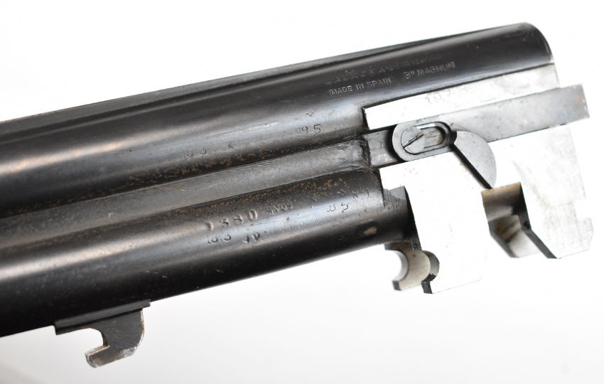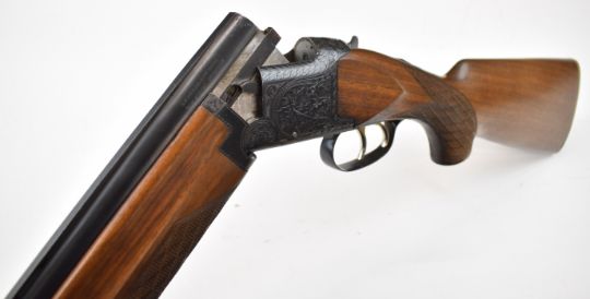 Laurona 12 bore over and under shotgun with engraved scenes of dogs and birds to the locks, chequered semi-pistol grip and forend, double single trigger, vented top rib and 28 inch barrels choked ½ and full, overall length 114cm, length of pull 37cm, serial number 97827. PLEASE NOTE THAT A VALID RELEVANT SHOTGUN CERTIFICATE IS REQUIRED TO VIEW OR PURCHASE THIS LOT AND FOR ALL SHOTGUNS OR RIFLES. PLEASE ENSURE YOU HAVE THE RELEVANT CERTIFICATE BEFORE BIDDING.