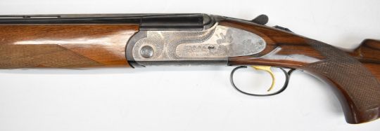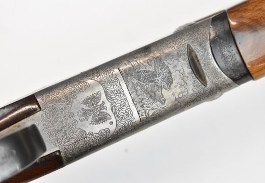 Rizzini Albion SL 20 bore over and under ejector shotgun with engraved scenes of birds to the sidelock plates, engraved underside, trigger guard, top plate and thumb lever, chequered semi-pistol grip and forend, single trigger, vented top and central ribs and 37 inch barrels choked ½ and improved cylinder, overall length 114cm, length of pull 37cm, serial number 94155. PLEASE NOTE THAT A VALID RELEVANT SHOTGUN CERTIFICATE IS REQUIRED TO VIEW OR PURCHASE THIS LOT AND FOR ALL SHOTGUNS OR RIFLES. PLEASE ENSURE YOU HAVE THE RELEVANT CERTIFICATE BEFORE BIDDING.