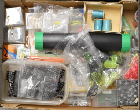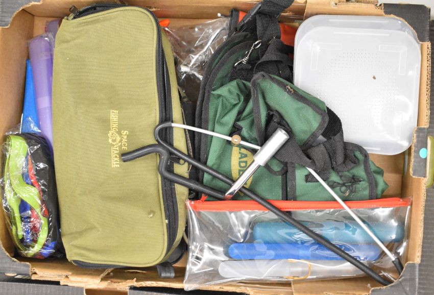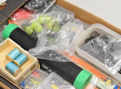 Very large collection of fishing tackle, mainly coarse / sea fishing including terminal tackle, hooks, skate traces, bags, floats, fittings, weights etc, many unused items.