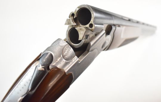 Beretta S687 12 bore over and under ejector shotgun with named and engraved locks and underside, engraved trigger guard, top plate and thumb lever, inlaid silver pigeon to the thumb lever, chequered grip and forend, vacant cartouche to the underside of the stock, vented top rib, double trigger and 28 inch barrels choked ¼ and ½, overall length 113.5cm, length of pull 36cm, serial number C91344B. PLEASE NOTE THAT A VALID RELEVANT SHOTGUN CERTIFICATE IS REQUIRED TO VIEW OR PURCHASE THIS LOT AND FOR ALL SHOTGUNS OR RIFLES PLEASE ENSURE YOU HAVE THE RELEVANT CERTIFICATE BEFORE BIDDING.