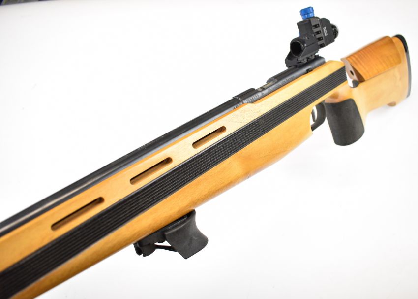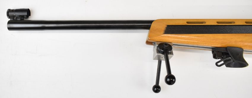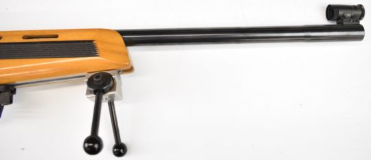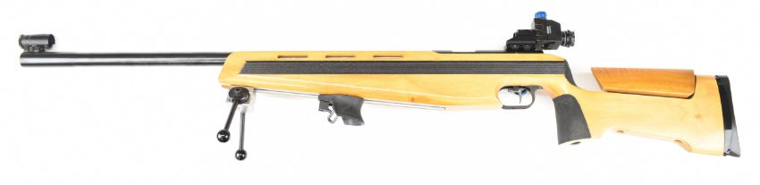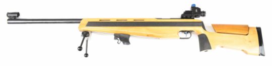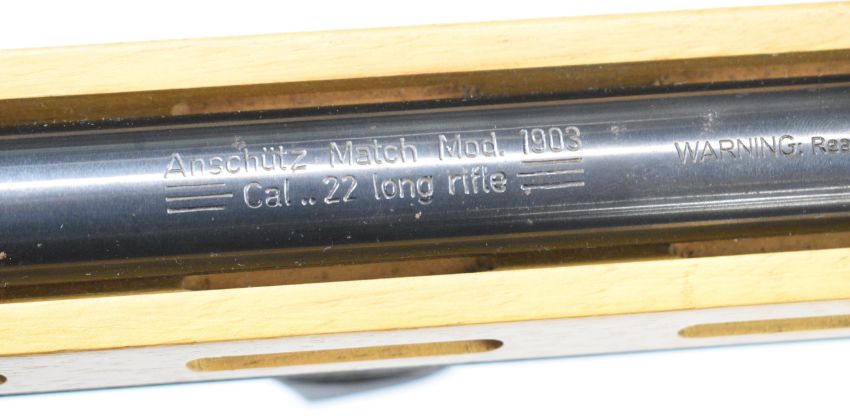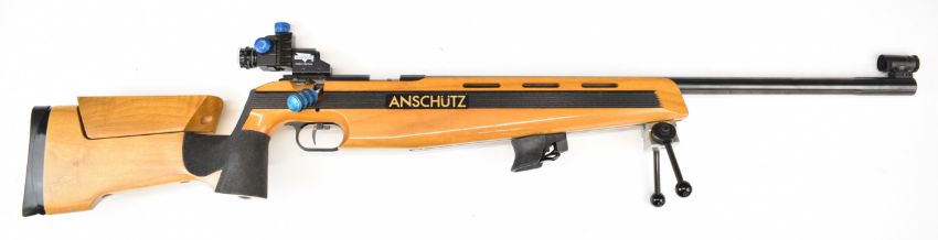 Anschutz Match 1903 .22 bolt-action target rifle with textured grip, adjustable comb and trigger, bi-pod, fully adjustable target sights and 25.5 inch barrel, overall length 108cm, serial number 3056369. PLEASE NOTE THAT A VALID RELEVANT FIREARMS CERTIFICATE IS REQUIRED TO VIEW OR PURCHASE THIS LOT AND FOR ALL SHOTGUNS OR RIFLES. PLEASE ENSURE YOU HAVE THE RELEVANT CERTIFICATE BEFORE BIDDING.