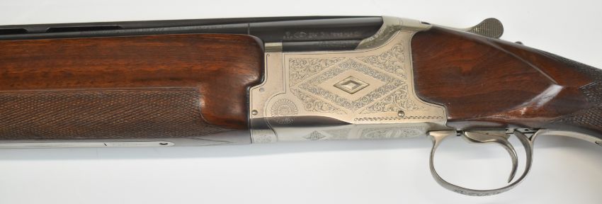 Winchester 101 XTR Sporter Diamond Grade 12 bore over and under ejector shotgun with engraved lock, underside, trigger guard and thumb lever, chequered semi-pistol grip and forend, single trigger, vented top and central ribs and 28 inch multi-choke barrels, overall length 115.5cm, length of pull 37cm, serial number DG487602E. PLEASE NOTE THAT A VALID RELEVANT SHOTGUN CERTIFICATE IS REQUIRED TO VIEW OR PURCHASE THIS LOT AND FOR ALL SHOTGUNS OR RIFLES PLEASE ENSURE YOU HAVE THE RELEVANT CERTIFICATE BEFORE BIDDING.