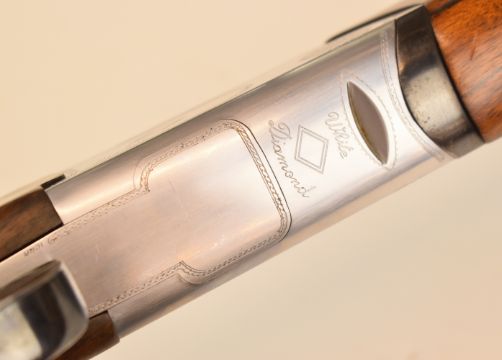 White Diamond Sapphire 12 bore over and under ejector shotgun with named and bored engraved locks and underside, chequered semi-pistol grip and forend, adjustable single trigger, vented top and central ribs and 29.5 inch barrels choked improved cylinder and ½, overall length 119.5cm, length of pull 36.5cm, serial number 195880. PLEASE NOTE THAT A VALID RELEVANT SHOTGUN CERTIFICATE IS REQUIRED TO VIEW OR PURCHASE THIS LOT AND FOR ALL SHOTGUNS OR RIFLES. PLEASE ENSURE YOU HAVE THE RELEVANT CERTIFICATE BEFORE BIDDING.