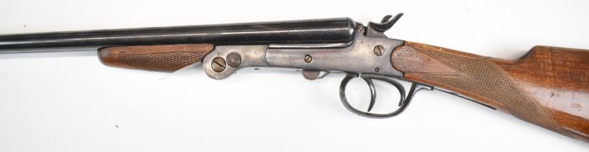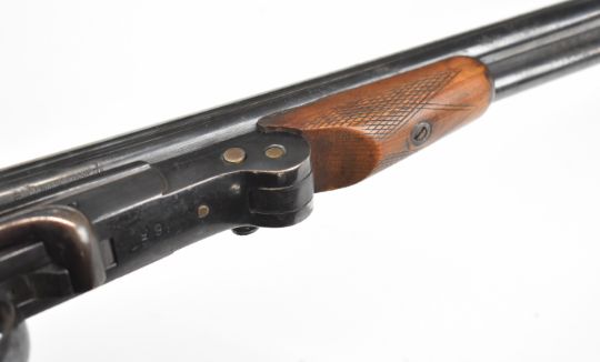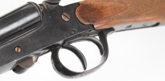 English .410 side by side hammer action folding poacher's shotgun with chequered grip and forend, double trigger and 28 inch barrels, overall length 109.5cm, length of pull 36.5cm, serial number 65. PLEASE NOTE THAT A VALID RELEVANT SHOTGUN CERTIFICATE IS REQUIRED TO VIEW OR PURCHASE THIS LOT AND FOR ALL SHOTGUNS OR RIFLES. PLEASE ENSURE YOU HAVE THE RELEVANT CERTIFICATE BEFORE BIDDING.